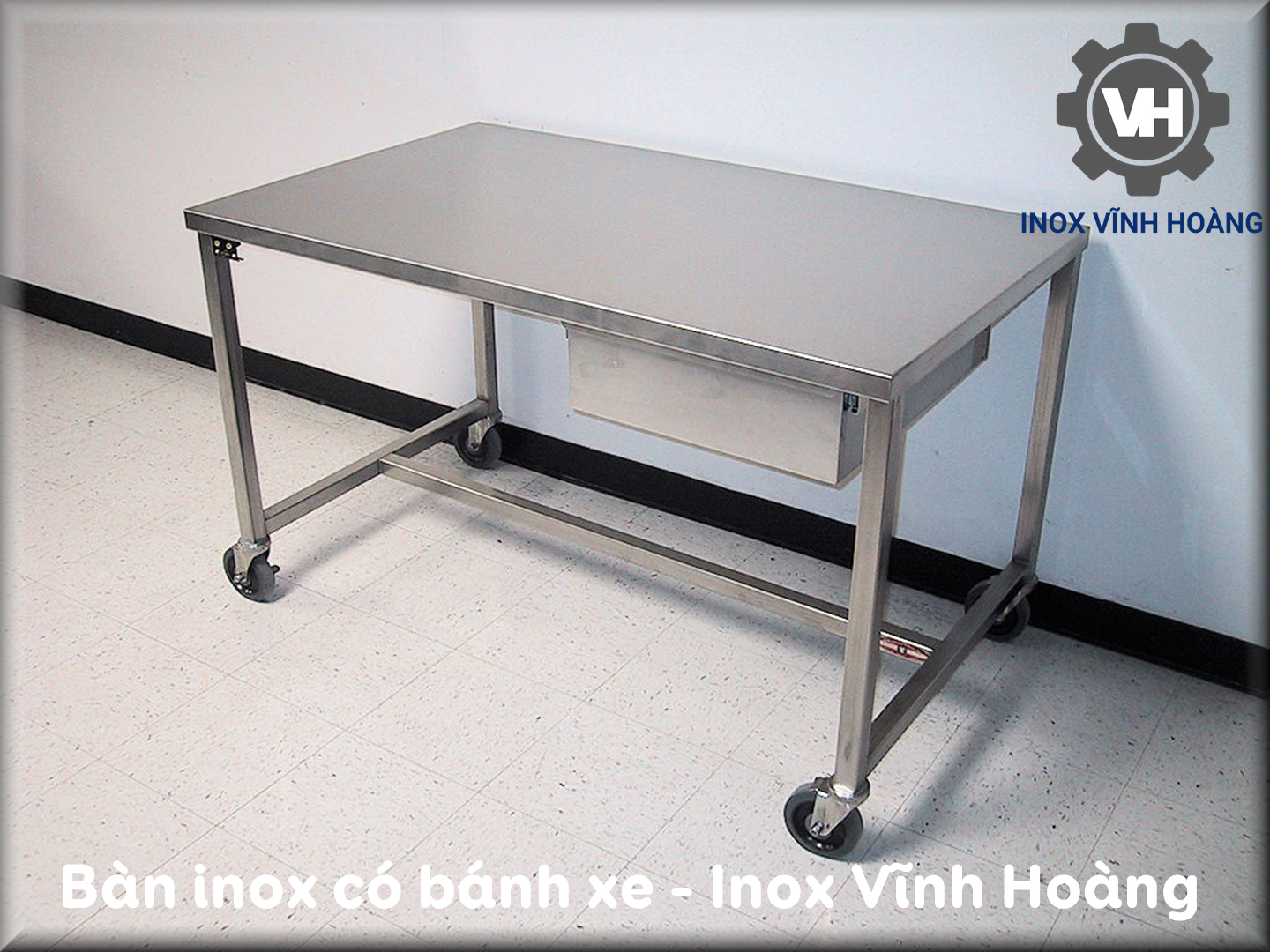 Inox Vĩnh Hoàng gia công bàn inox có bánh xe theo yêu cầu với số lượng từ 1 chiếc trở lên.