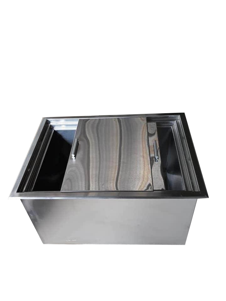 Kích thước chuẩn: Thùng đựng đá inox thiết kế nhỏ gọn, linh hoạt, tối ưu diện tích, dễ dàng di chuyển, dễ tháo lắp. Trữ nước khi đá tan chảy, có đáy thùng chấn thoát nước về ống thoát.
