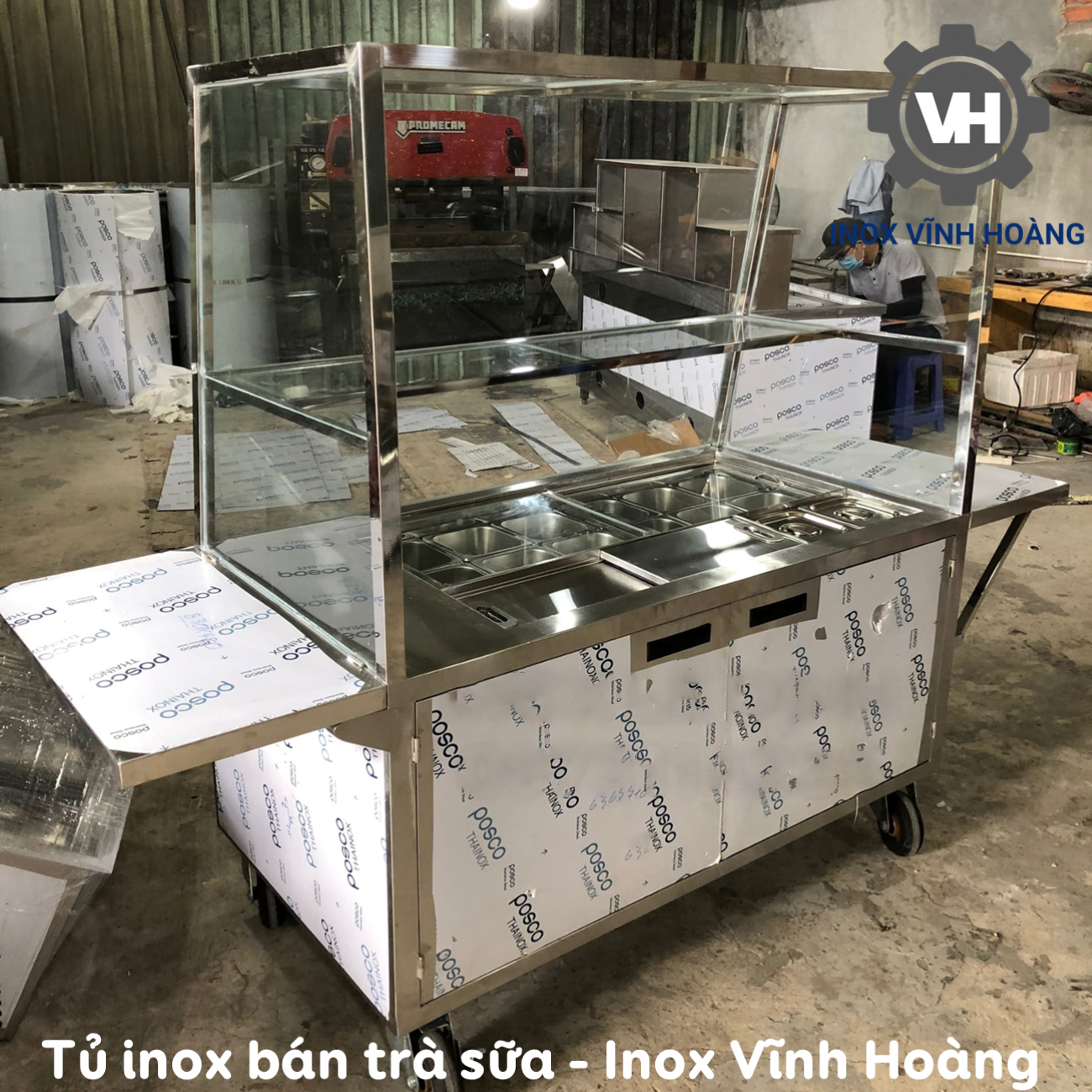 Inox Vĩnh Hoàng là đơn vị cung cấp tủ inox bán trà sữa chất lượng hàng đầu bởi chúng tôi là xưởng sản xuất. Nhờ đó, khách hàng sẽ tối ưu được chi phí và hỗ trợ thiết kế tận tình sao cho phù hợp nhất với công việc.